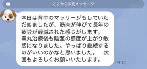 写真は1回目の治療前後と3回目の治療前後の比較です。名古屋からの患者さまで、大阪でいくつか治療を受けたが改善せず、東京で治療を受ける事を決意して上京。好きな風俗店はフワフワな泡を使った密着洗体の店舗型エステ。ちょっと前ま […]