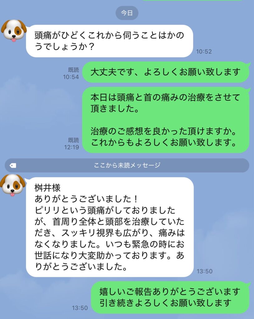 頭痛と首の痛みで来院。首が凝り固まっていました。忙しさやストレスが原因だと思い(寒さもストレスです)自律神経治療で、身体を副交感神経に傾けました。