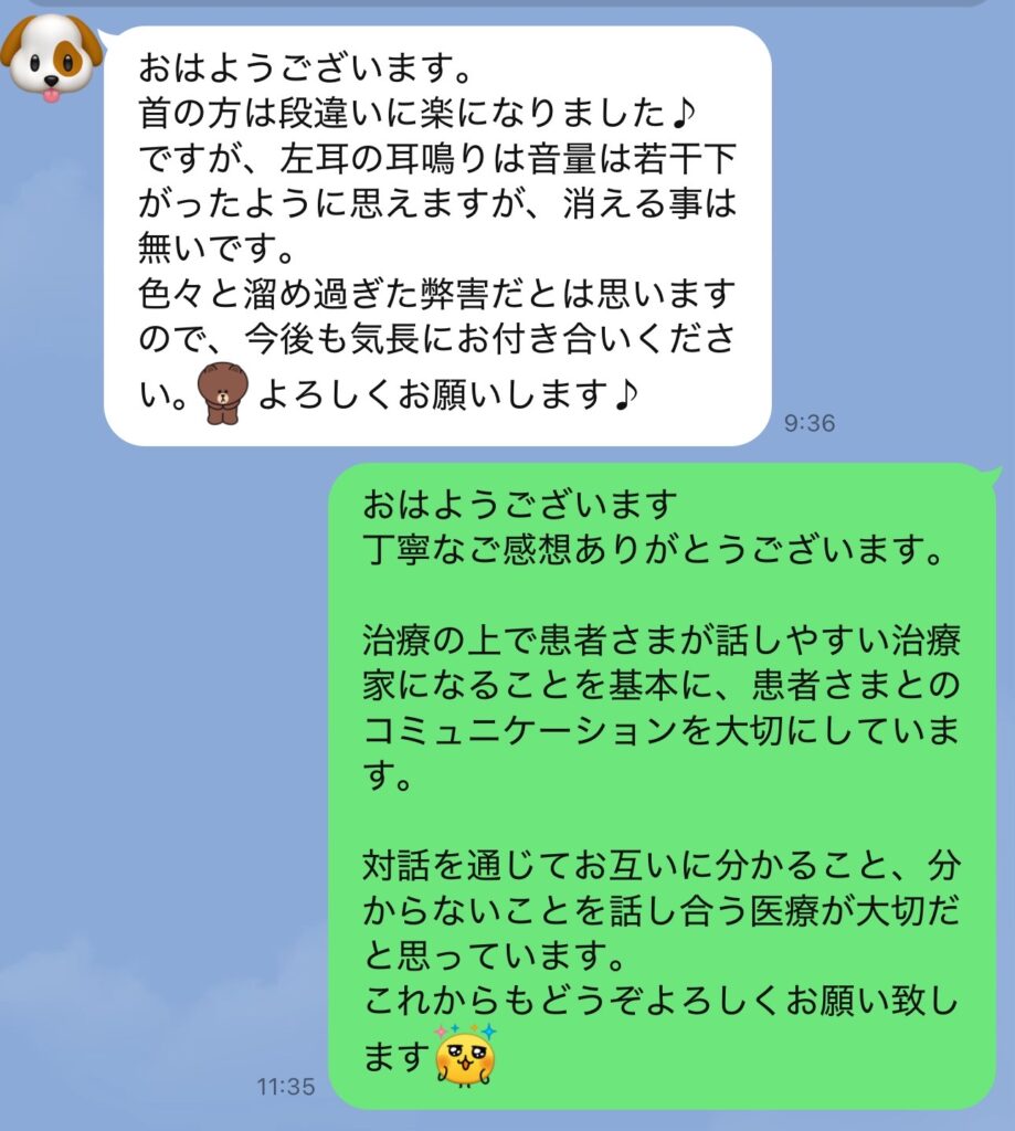 耳鳴り 61歳 キーン 2025年12月3日 最終更新日時 : 2025年12月3日 masui 治療院では、私の推薦する治療方法だけではなくて、患者さまがかつて他の治療院で受けていた施術法も含めて、多くの選択肢から、治療方法を選んでいます。患者さんの希望する治療方法は多様ですし、患者さんから提案を受ける事も多くなってきました。患者さんと治療家が対話を通じて話し合う医療を重視しています \ 最新情報をチェック / Page Views 5 FacebookXBlueskyHatenaCopy