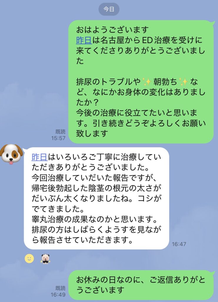 モモンガが羽を大きく広げましたみたいなびろんとした陰嚢の方から、小さいムササビくらいのサイズが垂れ下がっている方まで、睾丸治療後は、陰嚢がヒュンって上にも持ち上がり、陰茎も陰嚢も硬く締まってきます。