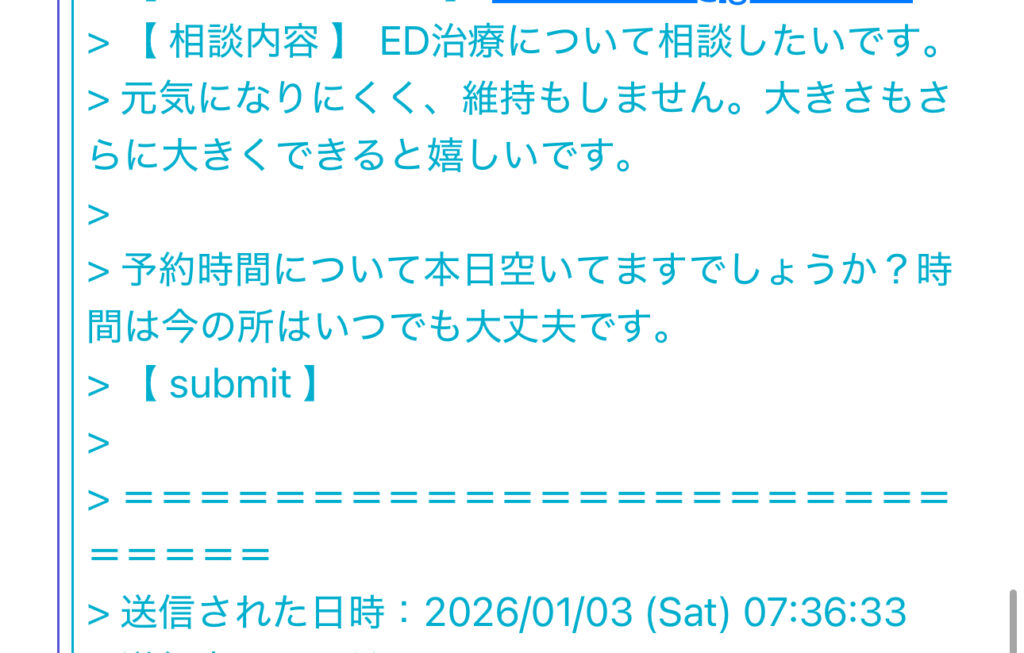 ED治療 勃起不全 勃起からのサイズアップ 34歳 2026年1月5日 最終更新日時 : 2026年1月5日 masui AGA治療を1年前におこなった。勃起不全との関係は不明。オナニーでは勃起できるのに、対女性だと勃起維持が難しい。勃起の維持とサイズアップ希望。自律神経治療と前立腺電気針を施行。お帰りの際は患者さまから笑顔がこぼれて、治療した側のわたしまで温かい気持ちになりました。 ここからのサイズアップ。副交感神経に満たしていきます。 \ 最新情報をチェック / Page Views 155 FacebookXBlueskyHatenaCopy