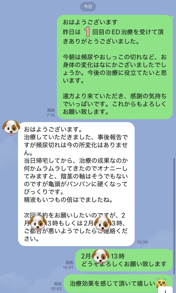 治療の継続は必要ですが、久しぶりに、ペニスが動き出して、気持ち良さも感じる事ができて良かった