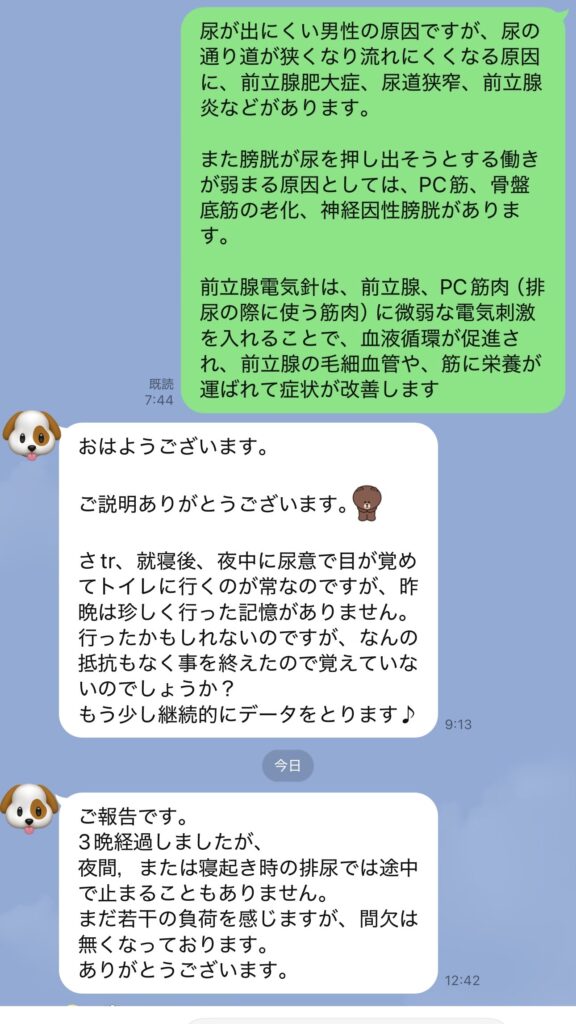 少し時間をかけないと排尿できない、頻繁にトイレに行くが、なんだかすっきり出し切れないといった状態が続いていました。尿閉は排尿に時間がかかったりするため、尿意があるのに出せないと、え?え?え?と不安になりますよね。