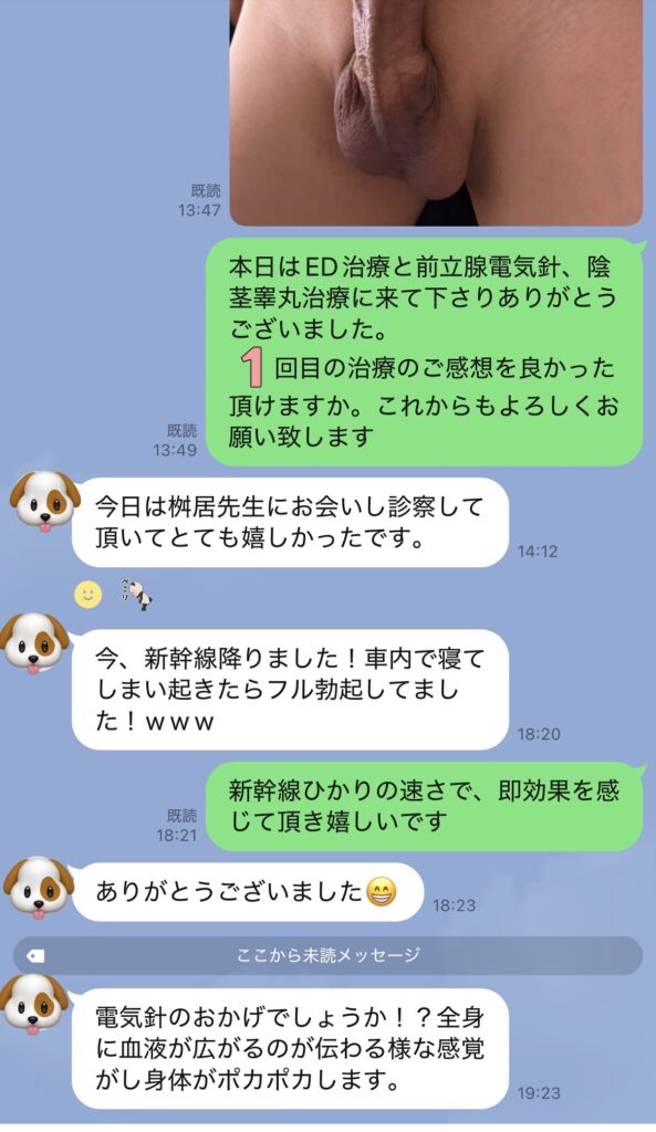 愛知県から新幹線こだまに乗って来院。治療日前日まで東京にイクのイカないの、相当に悩んでいらしゃっいましたが、最後は治療にイキたいと直接、お電話を頂きました。