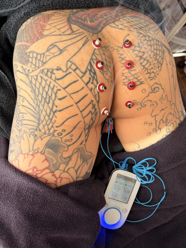 陰茎の根元に電流を流します。睾丸が震える程度。