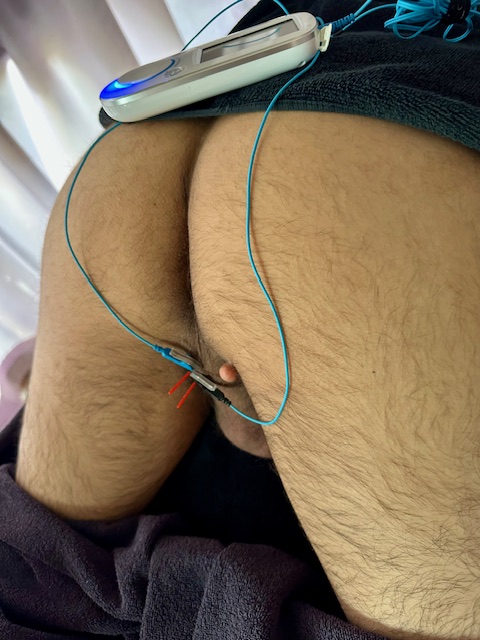 前立腺電気針 追加で1本刺しました  体格によっては2~4本刺します
