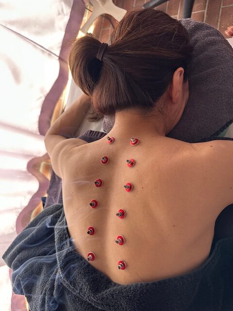 自律神経治療 背骨の両側をお灸で緩めていきます