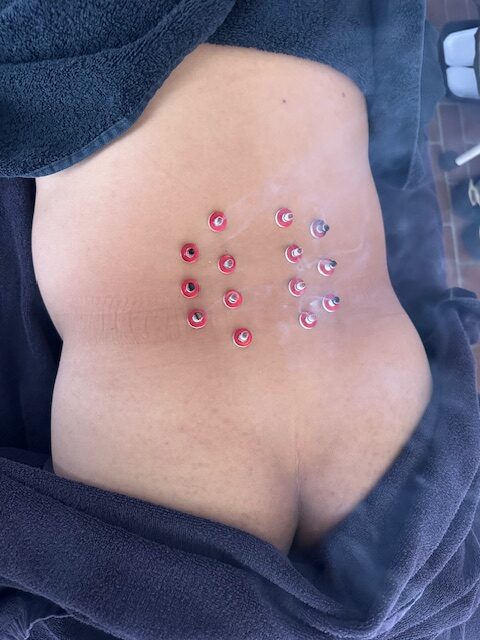 会陰の鍼をプラスして血流を促進していきます、会陰の鍼の写真は撮り忘れました