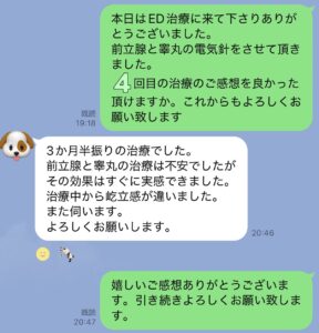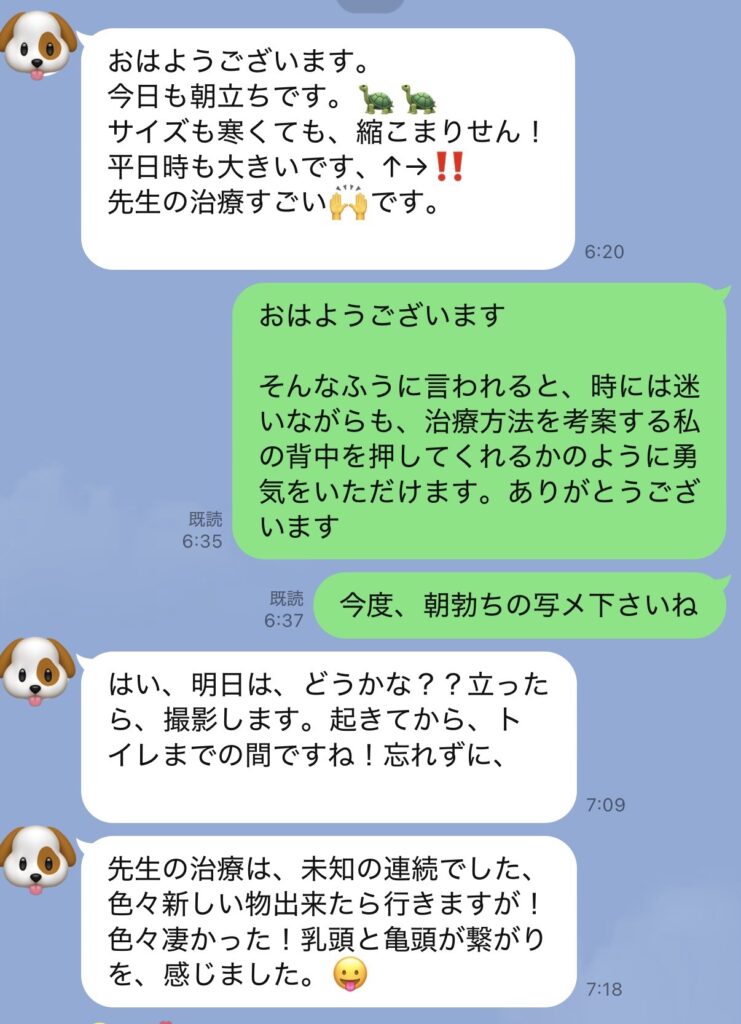 ED治療 5年ぶりの朝勃起 陰茎・睾丸への電気針 1回目の治療過程 63歳 2026年3月6日 最終更新日時 : 2026年3月6日 masui 陰茎根本から陰茎と睾丸に向けて低周波電気刺激を数分間ながします。低周波電気治療は効果が高いですが、電気には違いないので、長時間の電気刺激は熱を持つ可能性があり、熱は精子の運動量能力に影を落とします。なので陰茎根本からの組織の活性化を狙う治療は、鍼でいう即刺即抜、短期決戦で勝負にでます。 \ 最新情報をチェック / Page Views 18 FacebookXBlueskyHatenaCopy