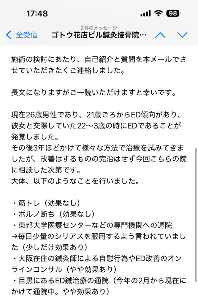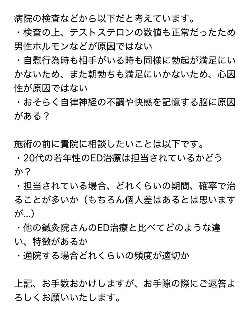 ED治療 20代の勃起不全 前立腺電気針 26歳