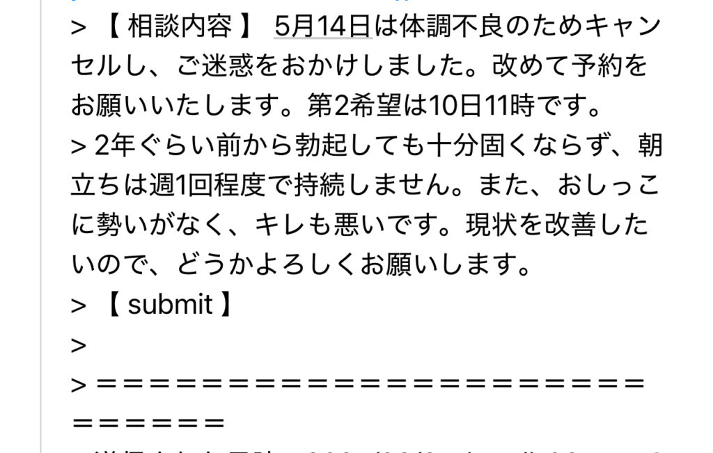 ED治療 71歳 前立腺電気針 治療2回目 2025年11月5日 最終更新日時 : 2025年11月5日 masui 1回目の治療では針は怖いからとのことで灸治療のみ。2回目は超音波、波動波、遠赤外線、前立腺電気針、すべての施術を受けられました。結果は満面の笑みでのご帰宅になりました \ 最新情報をチェック / Page Views 15 FacebookXBlueskyHatenaCopy