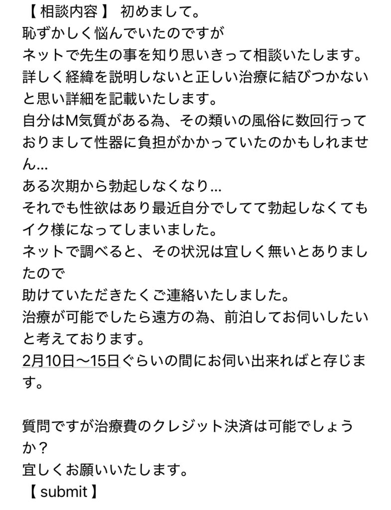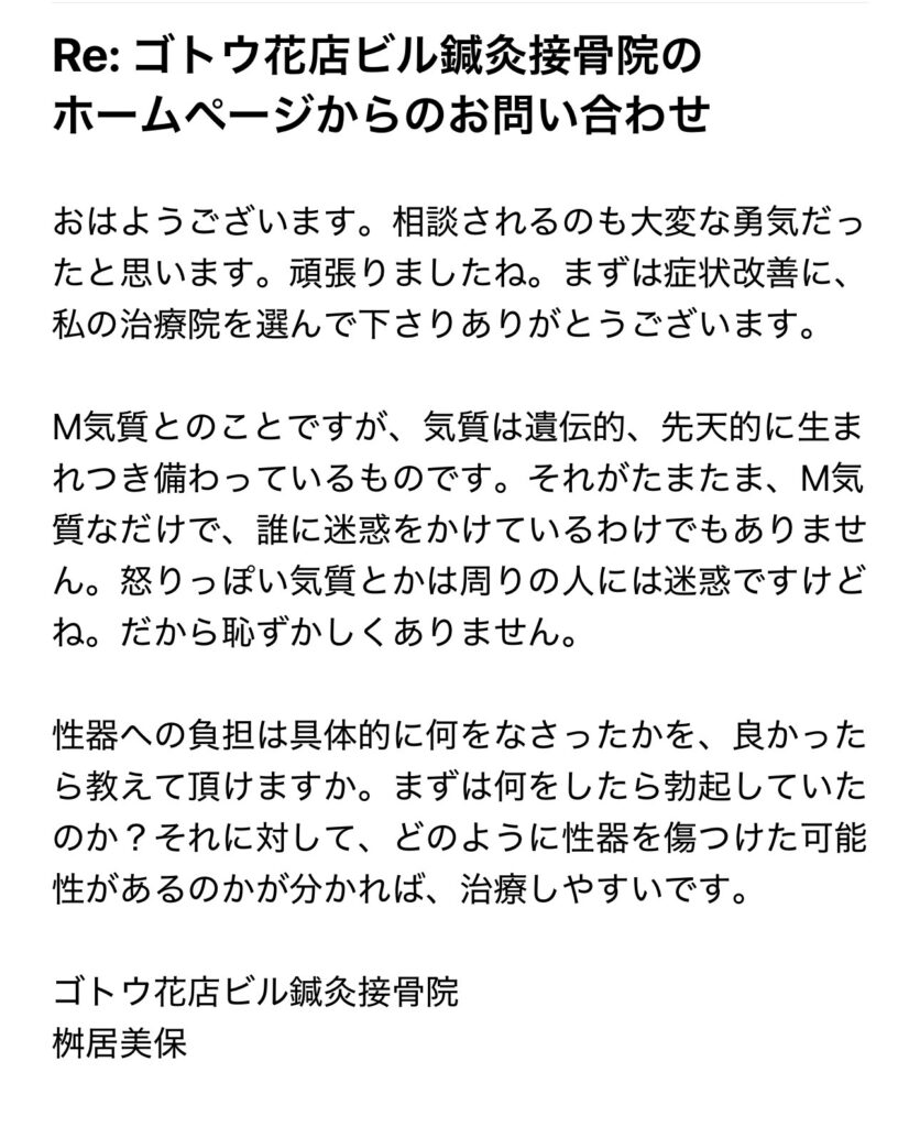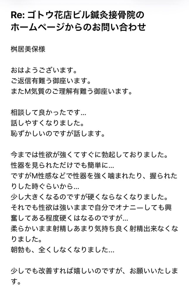 ED治療 M気質 亀頭磨き 性器の感受性低下 58歳
